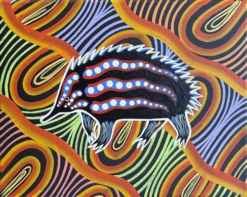 Brett Wilson, a Yorta Yorta man from Echuca, started painting around the age of 8 (self-taught). A few years down the track his passion led him to Bendigo Regional Institute of TAFE, Echuca Campus where he studied Certificate I, II and III in Aboriginal and Torres Strait Islander Cultural Arts. The course gave Brett the opportunity to try different mediums.