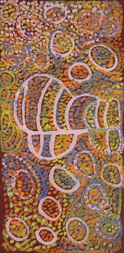 Rachel Yukultja Jennings was born at Pirti Parnangu claypan. Her country is between Pirti Parnangu and Wilkurrul near Mantamaru. Common themes in her painting are the Tjukurrpa belonging to this area such as Tjitji Kutjarra. As a young girl Rachel travelled the area around Mantamaru with her family. Her father and mother adopted Carol Golding after her parents passed away and cared for her into adulthood. The two women recall early days as children walking from place to place with their families and remain great friends, often painting together. Rachel was a young woman in her teens when the family moved into Warburton Mission after the birth of Rachel's youngest sister, Eunice. She spent most of her adult life in Warburton where she was married and raised her two daughters. Rachel was initially involved with the Warburton Arts Project.However, since moving to Kungarangkalpa Aged Care at Wanarn she has begun painting with Warakurna Artists. Rachel's sister is Eunice Porter one of the founding Artists at Warakurna Artists and present Chairwoman. She is also a keen weaver and works also with the Tjanpi Desert Weavers.