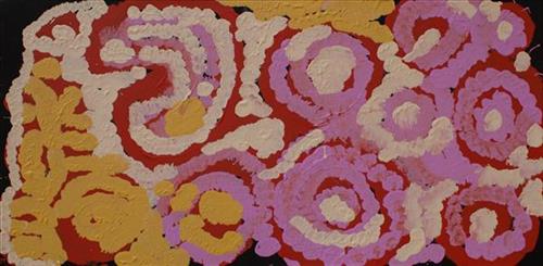 Warakurna Artists works closely with Wanarn Aged Care Facility to conduct painting sessions with elderly patients. This program nurtures artists who have arguably contributed largely to one of the most significant art movements in Australia. The joyous communal activity has a myriad of positive benefits such as reliving boredom and frustration. Health staff report that this diversional therapy helps to reduce patient’s drug intake and the old people rejoice in sharing and passing on their important Tjukurrpa with their families who visit them when the workshops are conducted. Warakurna Artists is a positive and powerful example of Aboriginal businesses managed and governed by artists and community elders ensuring the wealth of talent and economic returns are retained in the community.