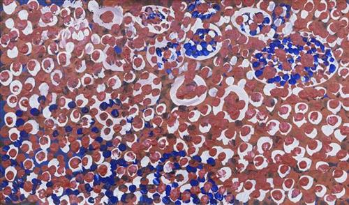 Elaine paints about the country around Blackstone, and its creation. Elaine is the sister of well known Ngaanyatjarra artists Jimmy Donegan and Dr. Pantjiti Mary McLean.