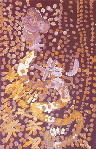 Elaine paints about the country around Blackstone, and its creation. Elaine is the sister of well known Ngaanyatjarra artists Jimmy Donegan and Dr. Pantjiti Mary McLean.