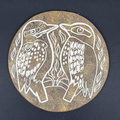 In 2008 I completed my Certificate IV in Aboriginal & Torres Strait Islander Cultural Arts. I enjoy painting or drawing my stories for printing on fabric and paper. I also tell my stories in clay: I do sgrafitto on ceramic bowls, coolamons and tiles.