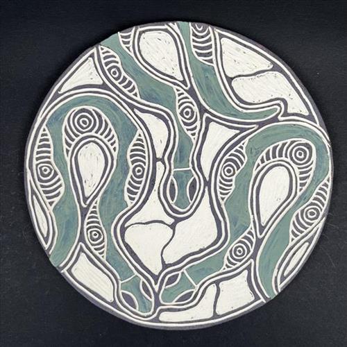 As an artist, I am most interested in screen printing on fabric and making ceramics. I’m keen to continue developing my work for further exhibition opportunities and grow my talent as an artist. I came to the arts through my grandmothers and aunties. I watched them when I was a child and later when I was a young woman I started doing art myself and worked alongside them.