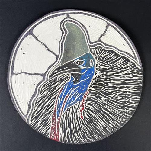 I show the cassowary in my art because it is also my partner’s totem. He performs the cassowary dance in public ceremonies. It was bestowed on him by his mother’s sister when he was a young boy. In 1997 he went with the Yalanji Dance Group to Hong Kong to perform the Cassowary dance there.”