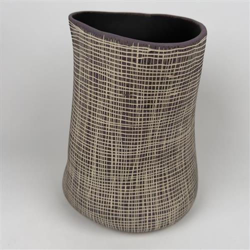 This design shows how the bottom part of a black palm basket is woven. My grandmothers and aunties used to make them. They cut off the young palm leaves in the centre, stripped and scrapped them. Then they would put the strips in freshwater to make them soft and keep them straight for weaving.