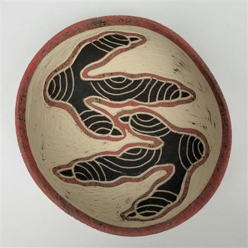 I show the cassowary in my art because it is also my partner’s totem. He performs the cassowary dance in public ceremonies. It was bestowed on him by his mother’s sister when he was a young boy. In 1997 he went with the Yalanji Dance Group to Hong Kong to perform the Cassowary dance there.”