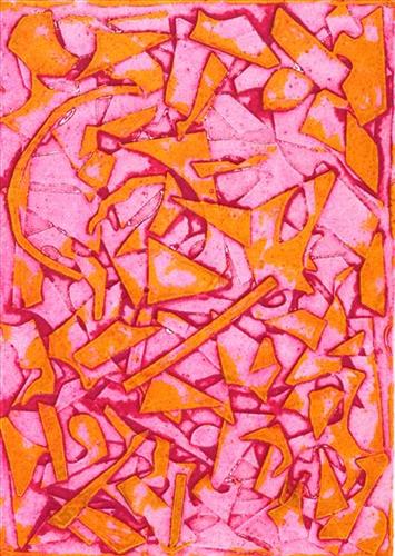 The artwork is a collagraph, printed on Hahnamule paper (100% cotton rag with strong archival properties). The textures in the work are drawn from a range of natural fibres, plants and other surfaces.