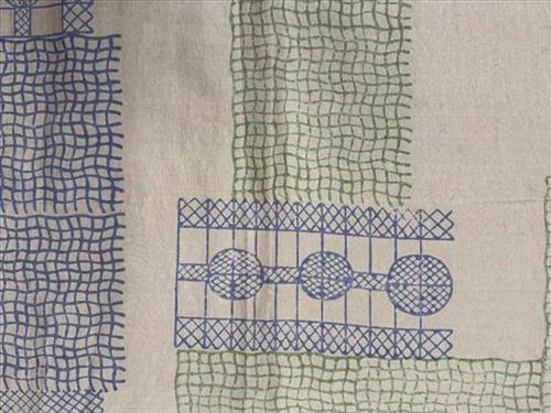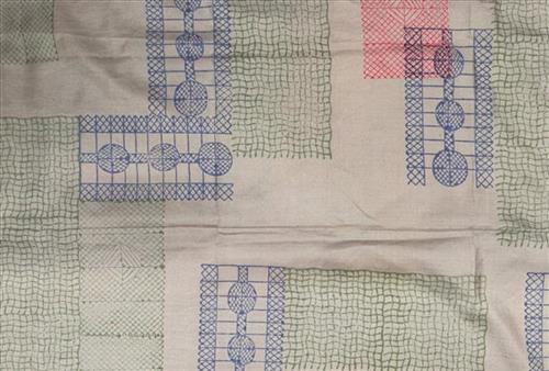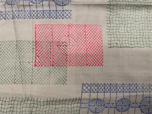 This screen print depicts a sacred site at Kurrurldul, an outstation south of Maningrida. The original screen print design was made in 2010 but continues to be printed at Babbarra Designs studio.