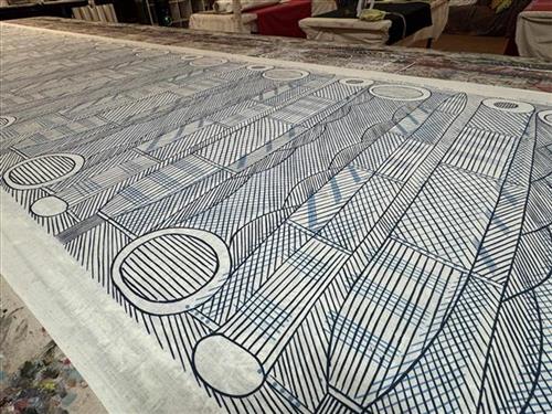 In this design, Jennifer has depicted kun-madj (dillybag), which is a large woven collecting basket. These large bags are often made from the burney vine (Malaisia scandens), a strong, pliable plant that grows along the ground and into the canopy of monsoon vine thickets. The bags are used to collect heavy foods, such as fish caught in conical fish traps or yams. They can also be made from kun-dayarr (Pandanus spiralis), a palm that grows in many areas of Arnhem Land. Tightly woven dillybags are used to collect sugarbag, the native honey.