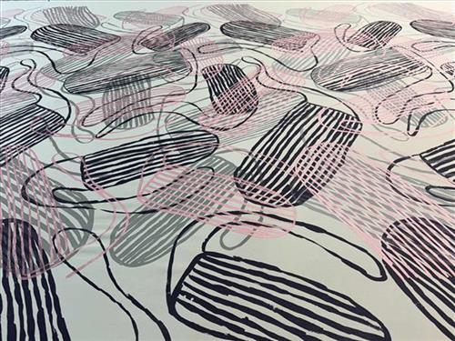 This three-colour design was created in 2007 and continues to be printed by the centre staff in Maningrida.