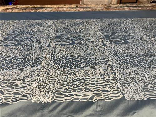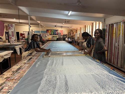 The mud ripples depicted in this design are on Elizabeth’s homeland, the Djinkarr and Nangak floodplains south of Maningrida in Arnhem Land.