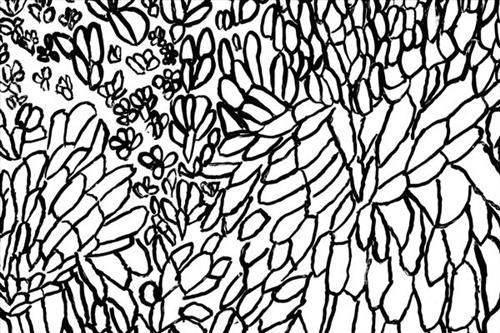 The mud ripples depicted in this design are on Elizabeth’s homeland, the Djinkarr and Nangak floodplains south of Maningrida in Arnhem Land.
