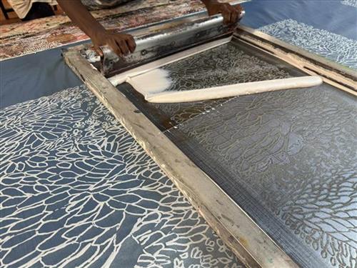 This design depicts the patterns of the freshwater mud ripples, which emerge after strong monsoonal wet seasons on the Djinkarr and Nangak flood plains.
