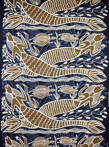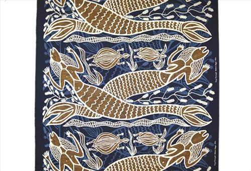 Yawkyawk is a word from the Aboriginal Kuninjku language, meaning ‘young woman’ and ‘young woman spirit being’. Sometimes compared to the European notion of mermaids, yawkyawks are usually depicted with the tails of fish. They have long hair, associated with trailing blooms of algae, typically found in Arnhem Land streams and rock pools.
