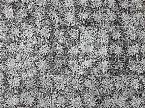 This fabric was created using the linocut fabric printing technique, which has been refined at Bábbarra Women’s Centre since it was introduced in the mid-1990s.