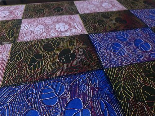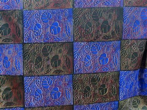 This fabric was created using the linocut printing technique. The lino tile has been carved by the artist in Maningrida, and has been printed by hand using a variety of colours and layers. The linocut technique ensures each textile piece is a one-off, limited edition piece. Bábbarra Women’s Centre supports the economic independence of Indigenous women in the Arnhem Land community of Maningrida, Northern Territory, Australia. Designs created by the women at Bábbarra reflect strong cultural knowledge, which is passed down to younger generations through their textile design practice.
