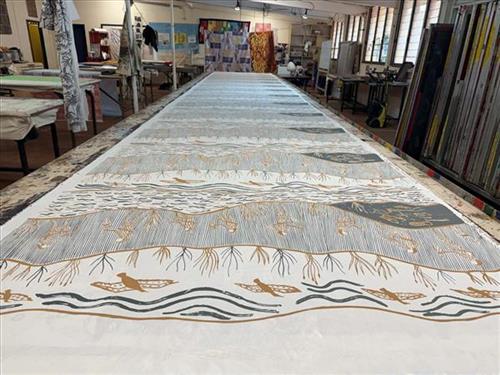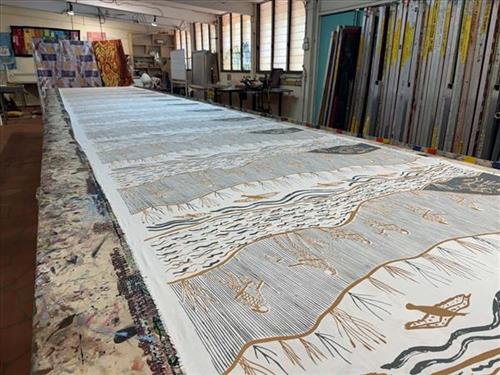 A two colour screen print design from 2022. Jay’s first large format design to join the Bábbarra Designs Collection.