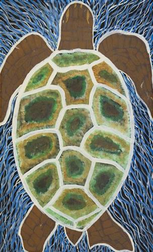 “All the fish – barramundi, salmon, dugong, turtle and jellyfish. I paint what I see and eat. Fish of the sea. I paint the right season for them, so if something is in season, I paint it. The threadfin salmon and blue nose salmon come in wintertime. Barramundi is in the hot time, when the jellyfish come out. Dugong is after the rainy season.