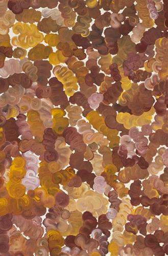 This artwork showcases the artist’s skillful use of colour, texture, and technique, reflecting a deep connection to their environment and culture. Each detail embodies the unique identity of Bidyadanga Artists, where the original five language groups—Nyangumarta, Mangala, Yulparija, Juwaliny, and Karrajarri—come together to create art that speaks to the heart of Country. Over time, the community and Art Centre has grown to include people from other Kimberley tribes, fostering a space where diverse cultural knowledge and practices come together. Situated where the desert meets the sea, artists draw inspiration from their ancestral Country and personal journeys. The artist captures the vibrant beauty of both desert and coastal landscapes, blending earthy reds, deep blues, and intricate patterns distinctive to their cultural heritage. The themes and composition invite viewers into the artist’s world, offering a glimpse of the rich, intertwined histories and the enduring connection to land and spirit that define the Bidyadanga community.