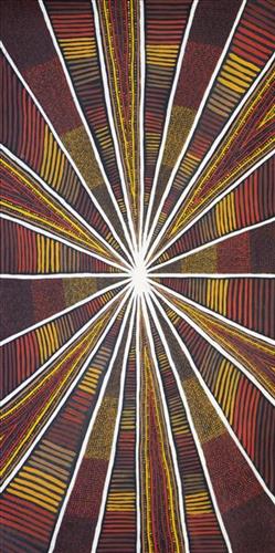 Untitled This artwork showcases the artist’s skillful use of colour, texture, and technique, reflecting a deep connection to their environment and culture. Each detail embodies the unique identity of Bidyadanga Artists, where the original five Read more…
