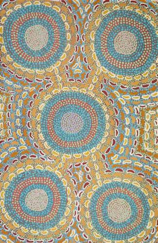 Jenny Butt grew up here in Bidyadanga.  She now lives in Parnngurr Community in the Pilbara region.  She lives with her grandparents who are renowned artists.  Jenny also paints for Martumilli Arts Centre in Newman but visits Bidyadanga from time to time.