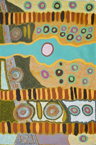 It all started again at Milly, I never painted since I finished school then I started painting for the art centre. What I do is a different style of painting but we are all painting one country. It is all around Wirnpa and all that area, my families country.
