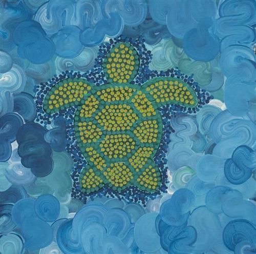 This artwork showcases the artist’s skillful use of colour, texture, and technique, reflecting a deep connection to their environment and culture. Each detail embodies the unique identity of Bidyadanga Artists, where the original five language groups—Nyangumarta, Mangala, Yulparija, Juwaliny, and Karrajarri—come together to create art that speaks to the heart of Country. Over time, the community and Art Centre has grown to include people from other Kimberley tribes, fostering a space where diverse cultural knowledge and practices come together. Situated where the desert meets the sea, artists draw inspiration from their ancestral Country and personal journeys. The artist captures the vibrant beauty of both desert and coastal landscapes, blending earthy reds, deep blues, and intricate patterns distinctive to their cultural heritage. The themes and composition invite viewers into the artist’s world, offering a glimpse of the rich, intertwined histories and the enduring connection to land and spirit that define the Bidyadanga community.