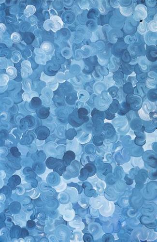 This artwork showcases the artist’s skillful use of colour, texture, and technique, reflecting a deep connection to their environment and culture. Each detail embodies the unique identity of Bidyadanga Artists, where the original five language groups—Nyangumarta, Mangala, Yulparija, Juwaliny, and Karrajarri—come together to create art that speaks to the heart of Country. Over time, the community and Art Centre has grown to include people from other Kimberley tribes, fostering a space where diverse cultural knowledge and practices come together. Situated where the desert meets the sea, artists draw inspiration from their ancestral Country and personal journeys. The artist captures the vibrant beauty of both desert and coastal landscapes, blending earthy reds, deep blues, and intricate patterns distinctive to their cultural heritage. The themes and composition invite viewers into the artist’s world, offering a glimpse of the rich, intertwined histories and the enduring connection to land and spirit that define the Bidyadanga community.