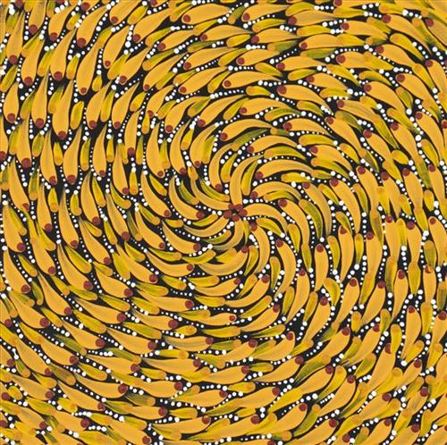 This painting is of Ngarrawanji which is black soil country grass and rocky country which gets really boggy when it is wet.