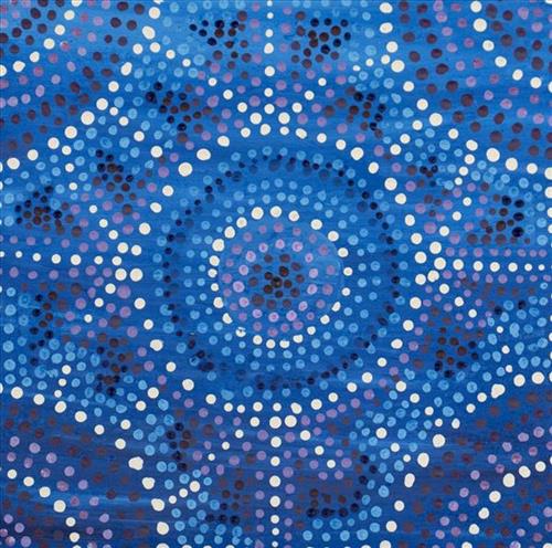 Through colour, pattern, and rhythm, the artist captures the cycle of seasons and the knowledge passed down — knowing when to gather certain foods, when animals are fat, when storms are coming, and how to care for Country through fire and everyday living. The work celebrates the constant relationship between people, weather, land, and sea, honouring the strength and continuity of cultural life.