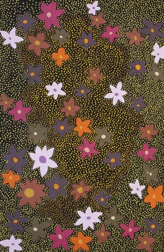 This artwork reflects the artist’s connection to Bidyadanga, a place where the desert meets the sea. Through colour, pattern, and texture, the painting captures important themes that shape the identity of the community and Art Centre.