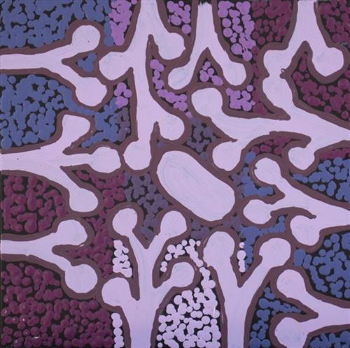 I started painting with Martumili (Martumili Artists), but before I began painting, I used to ask the old people first. I learnt to paint from my grandfather (Wokka Taylor, dec.). When we went to 33 and back to Punmu, we were just watching them. He told me to get a brush, and then he told me to start painting. I think him and Dunjan (Thelma Judson) were painting a big one, and I came to help him. He told me, ‘One day you should go to Kulyukartu,’ and so I went there.