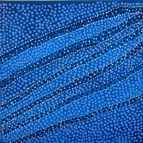 In this work, the artist celebrates the beauty of Country and community, offering a glimpse into the rich histories, cultural strength, and enduring connection to land, sea, and way of life.