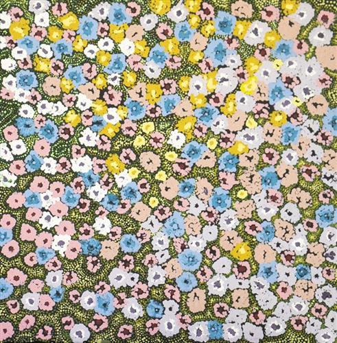 In this work, the artist celebrates the beauty of Country and community, offering a glimpse into the rich histories, cultural strength, and enduring connection to land, sea, and way of life.