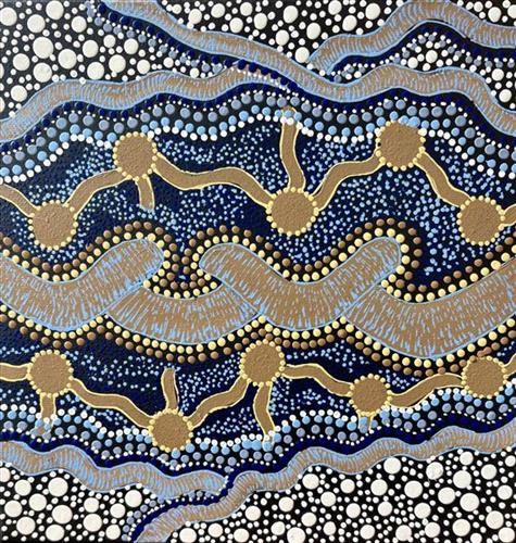 My families lived on the coast of West South Australia, and my memories are of all of us spending time on the beach and in the ocean. It was a place of gatherings by the water. This influences my art, and I draw water paintings which reflects my memories, and brings me back to those happy times.
