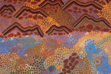 Native Wildlife Animals from Yindjibarndi Country. *Damaged at top. Price reflects peeling paint. This artwork is currently on stretched canvas. We will have to obtain a freight quote if you would like to purchase this work stretched.