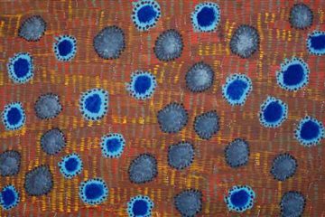 Mulla Mulla The purple Mulla Mulla, called Gumbarli in Yindjibarndi. It’s a bright purple flower that grows all over our Country, lining the roads and spreading wide after the seasons change. I love seeing this strong colour across the land when it comes into bloom. Dimensions: 29 x94cm